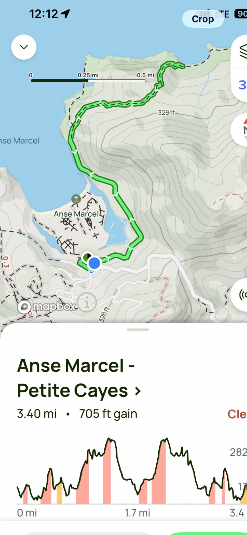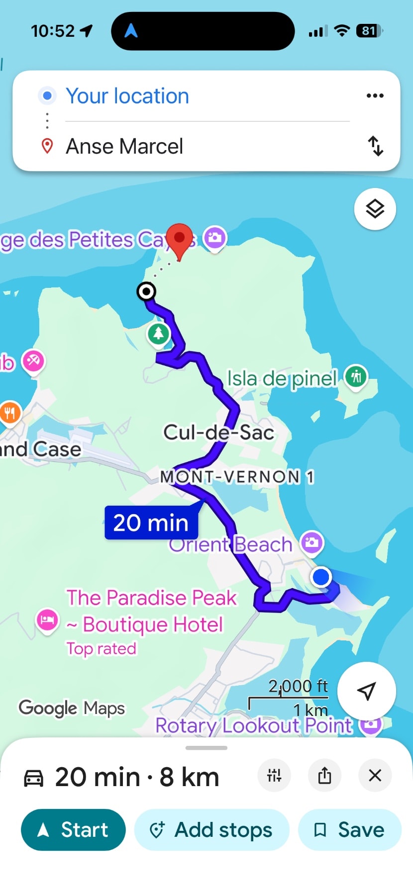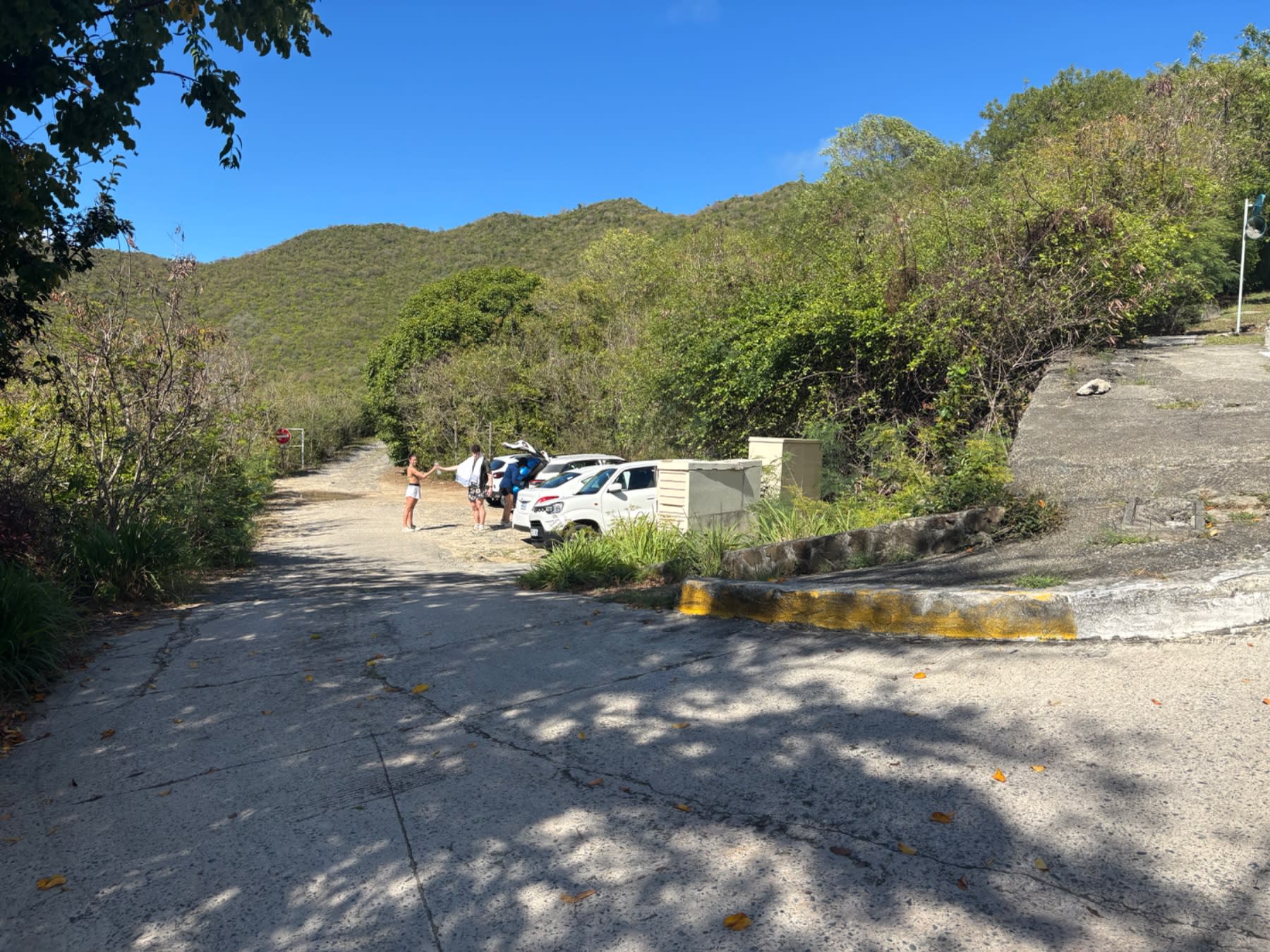 Drive to Anse Marcel and head up the hill just above the beach. The trailhead parking lot is small — maybe five cars — and easy to miss on the way down. If it's full, the main Anse Marcel beach parking is a short walk back up the hill.