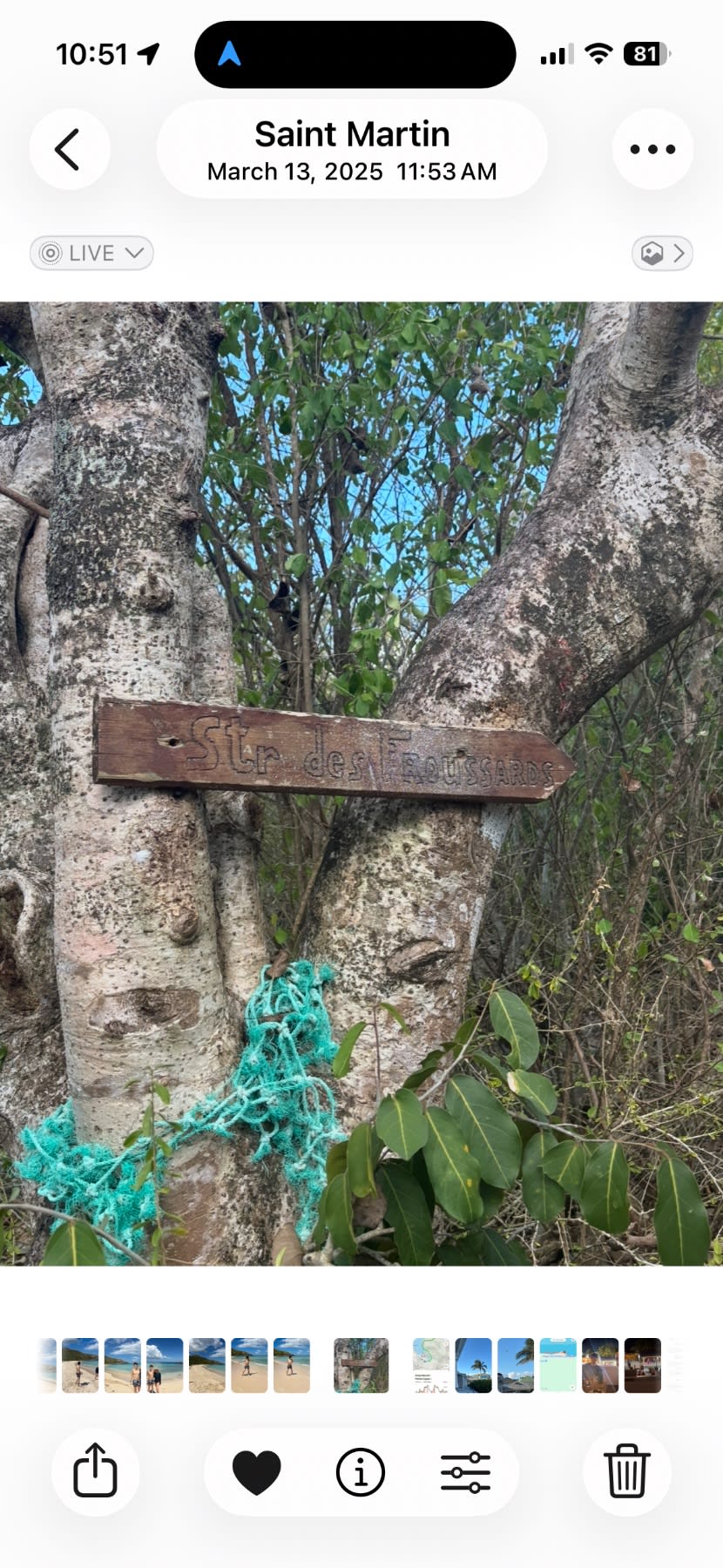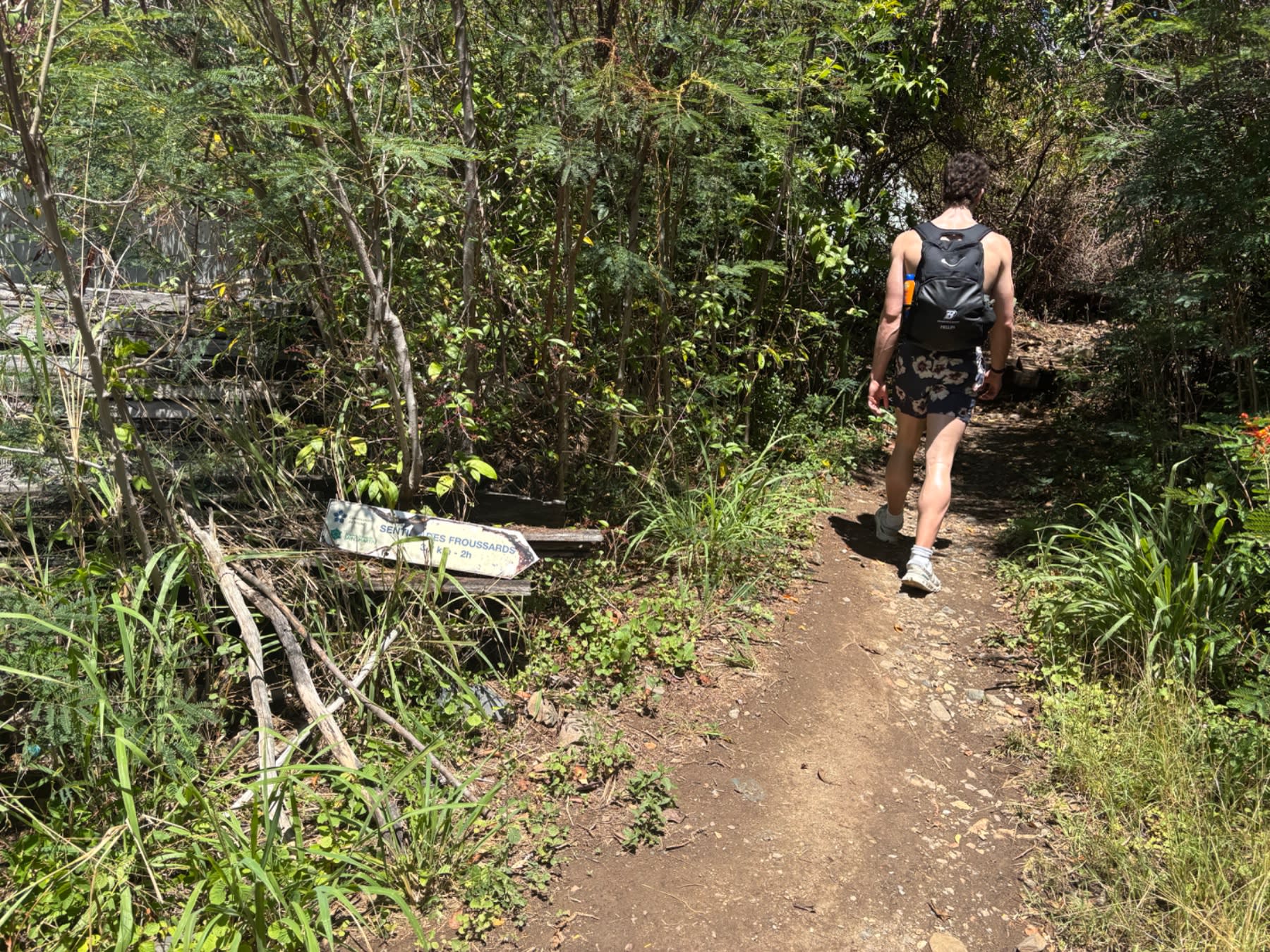 A bit further in, the trail splits. Stay right for Petites Cayes. The left fork heads somewhere else — I've never explored it and can't tell you where it goes. Right is your path.