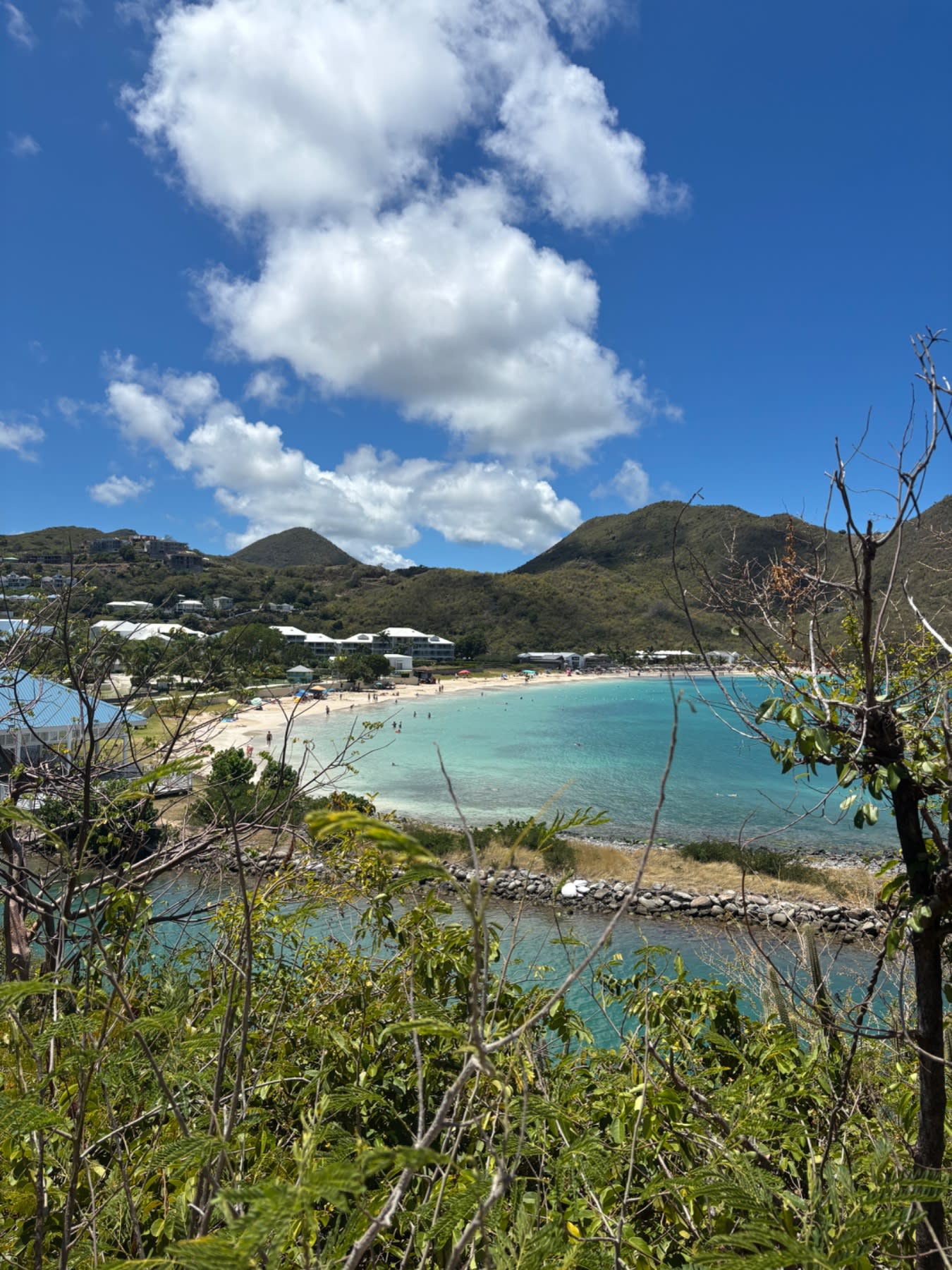As the road bends around the headland, the beachside of the Secrets St. Martin resort appears below you. Another confirmation you're on track, another great vantage point. Pause here. Take it in.