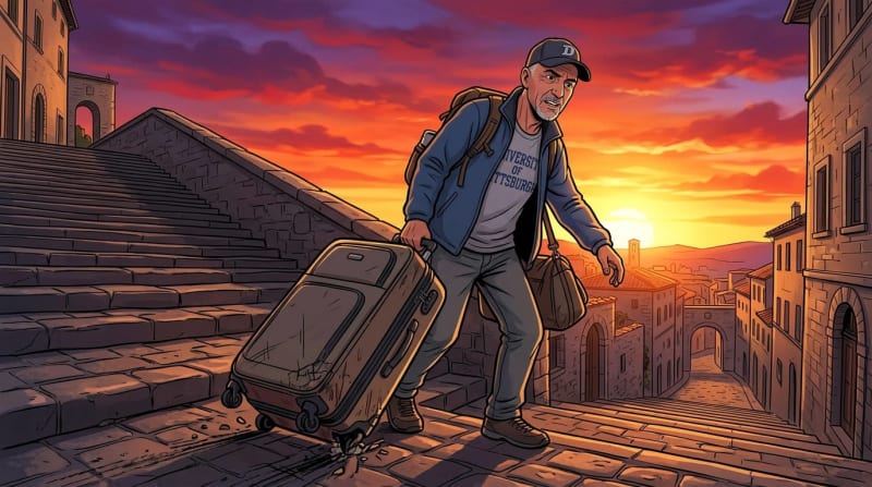 The paths are narrow. There are stairs everywhere. A rolling suitcase is nearly useless. Welcome.
